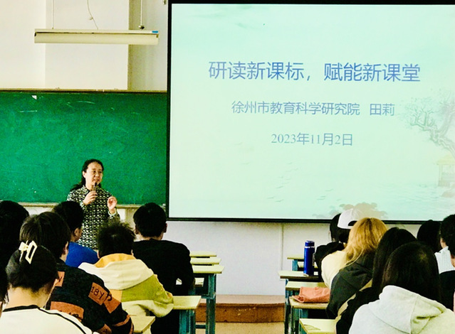 根据2020级英语专业教育实习工作安排,为进一步提高英语专业(教育方向)员工对英语教学的理解和认识,公司于11月2日邀请了徐州市教育科学研究院教研员、徐州市教育学会外语教学专业委员会副理事长田莉老师为英语专业20级员工做了一场题为“研读新课标、赋能新课堂”的专题讲座。