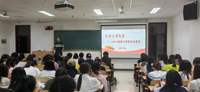 为深入学习习近平新时代中国特色社会主义思想,教育引导新生坚定理想信念,9月22日,谈球吧员工党支部书记郑清军老师为新生讲授专题党课,2023级全体新生参加并学习。